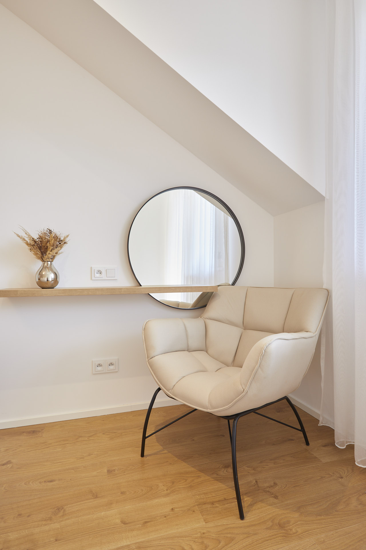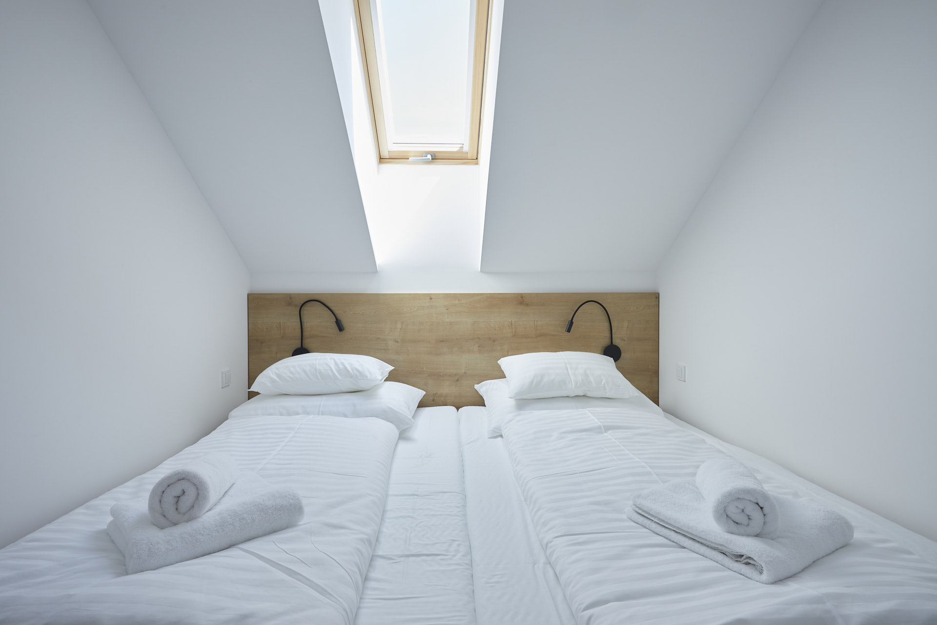 Each apartment has a fully equipped modern kitchen, 2 bathrooms with shower cubicles and 3 bedrooms. Its spaciousness makes it an ideal place for a family holiday. There is also a cosy living room with equipment designed with regard to the safety of your children.